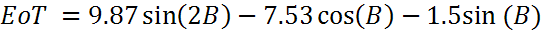 , где B = 360° (N - 81)/364 — приращение долготы среднего Солнца от начала года, N — количество дней, прошедших с начала года.