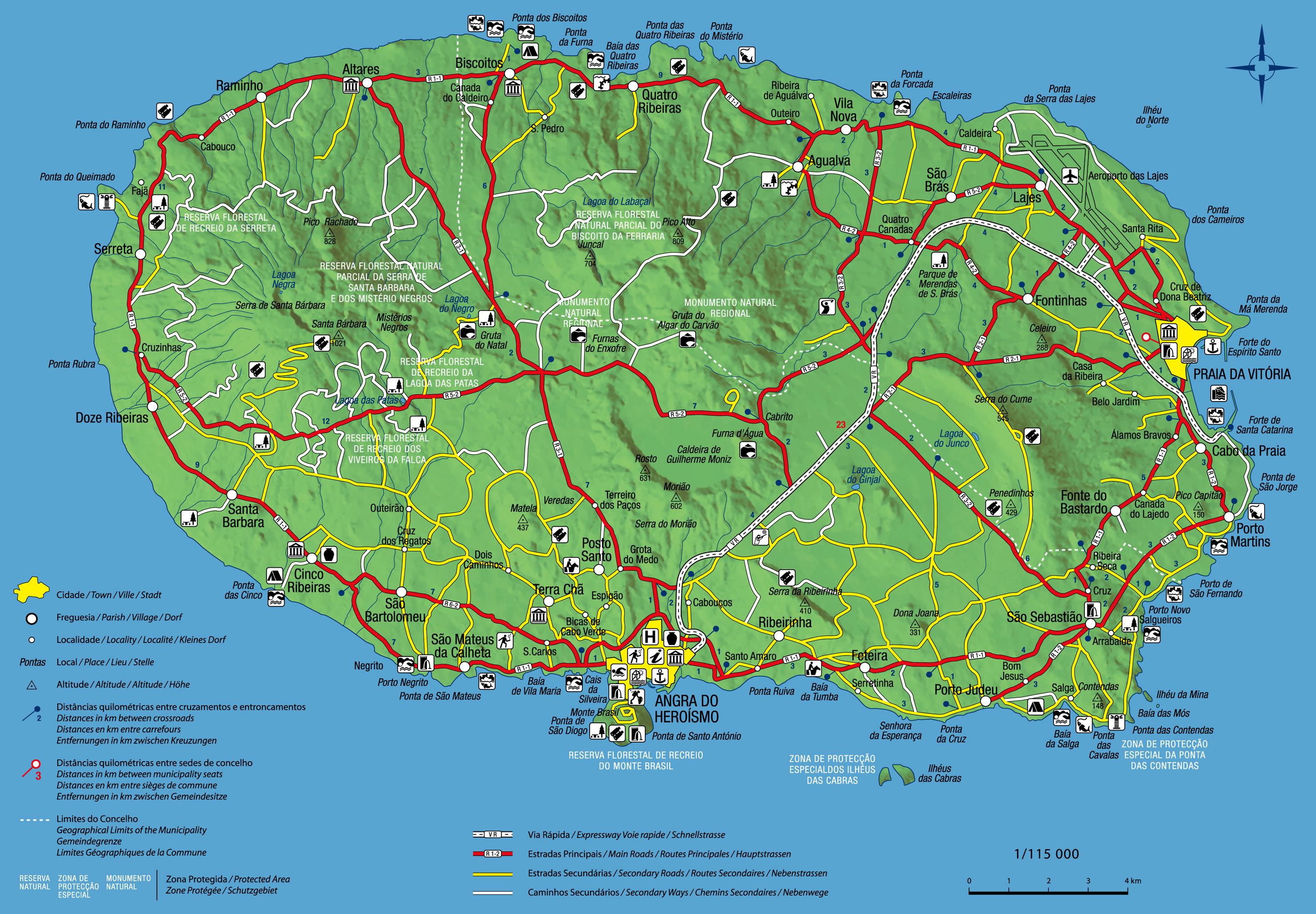 Скачать туристскую карту острова Терсейра. Размер карты 948 КБ Скачать карту