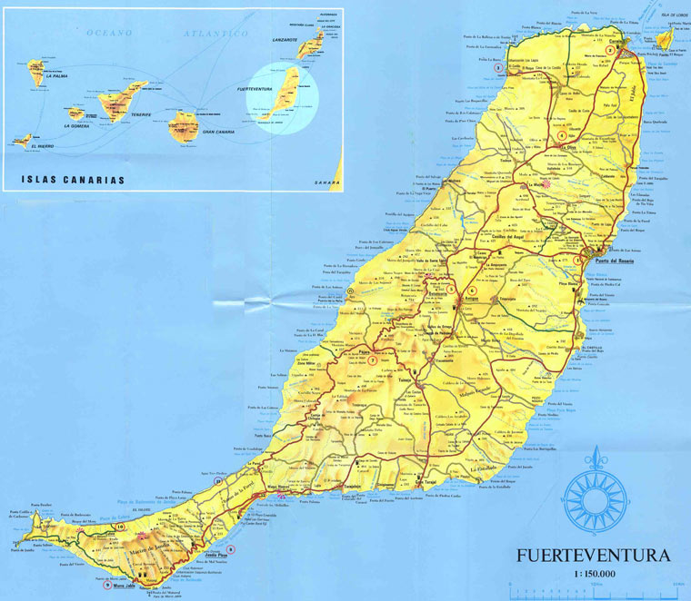 Скачать туристскую карту Фуэртевентуры. Размер карты 519 КБ Скачать карту