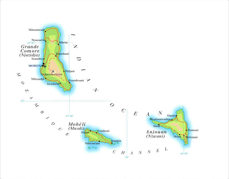 Физические карты Коморских островов
