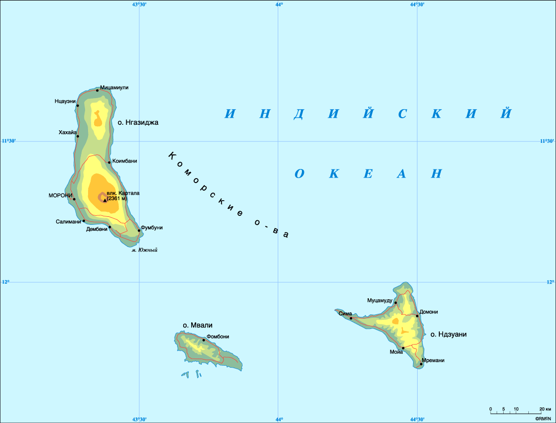 Скачать физическую карту Коморских островов на русском языке. Размер карты 36,7 КБ Скачать карту