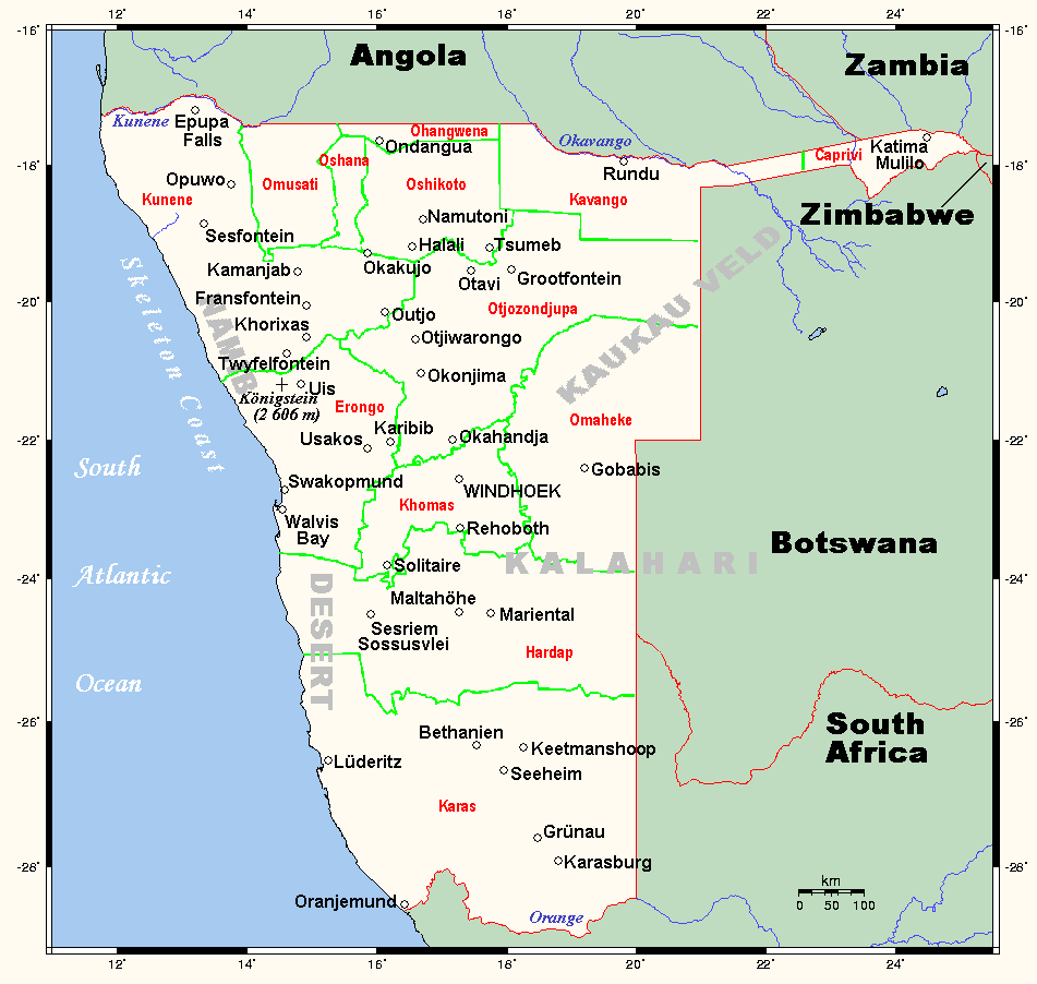 Скачать карту деления Намибии на области. Размер карты 38 КБ Скачать карту