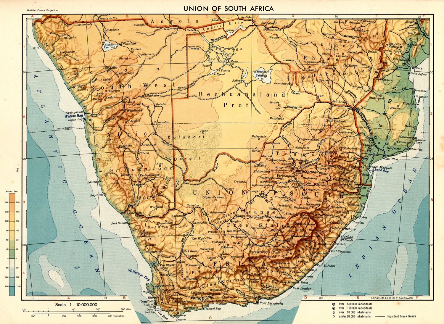Скачать физическую карту Южно-Африканской Республики. Размер карты 549 КБ Скачать карту