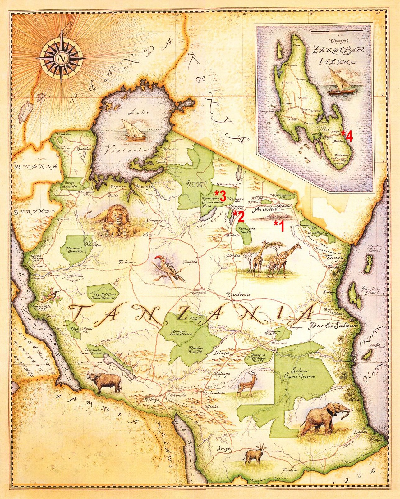 Кроме того хорошая и информативная карта национальных парков Танзании доступна на сайте Tanzania GIS User Group