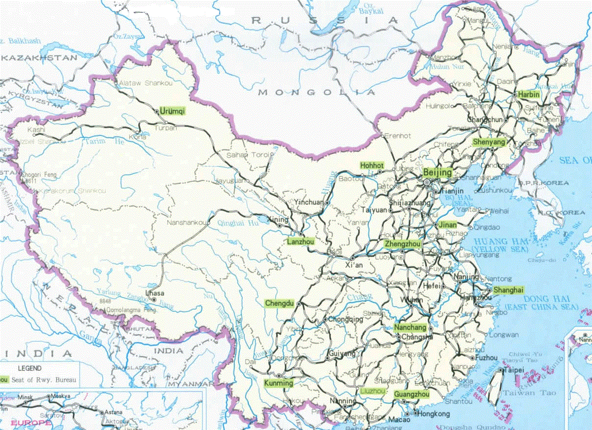 Скачать карту железных Китая на английском языке. Размер карты 437 КБ Скачать карту