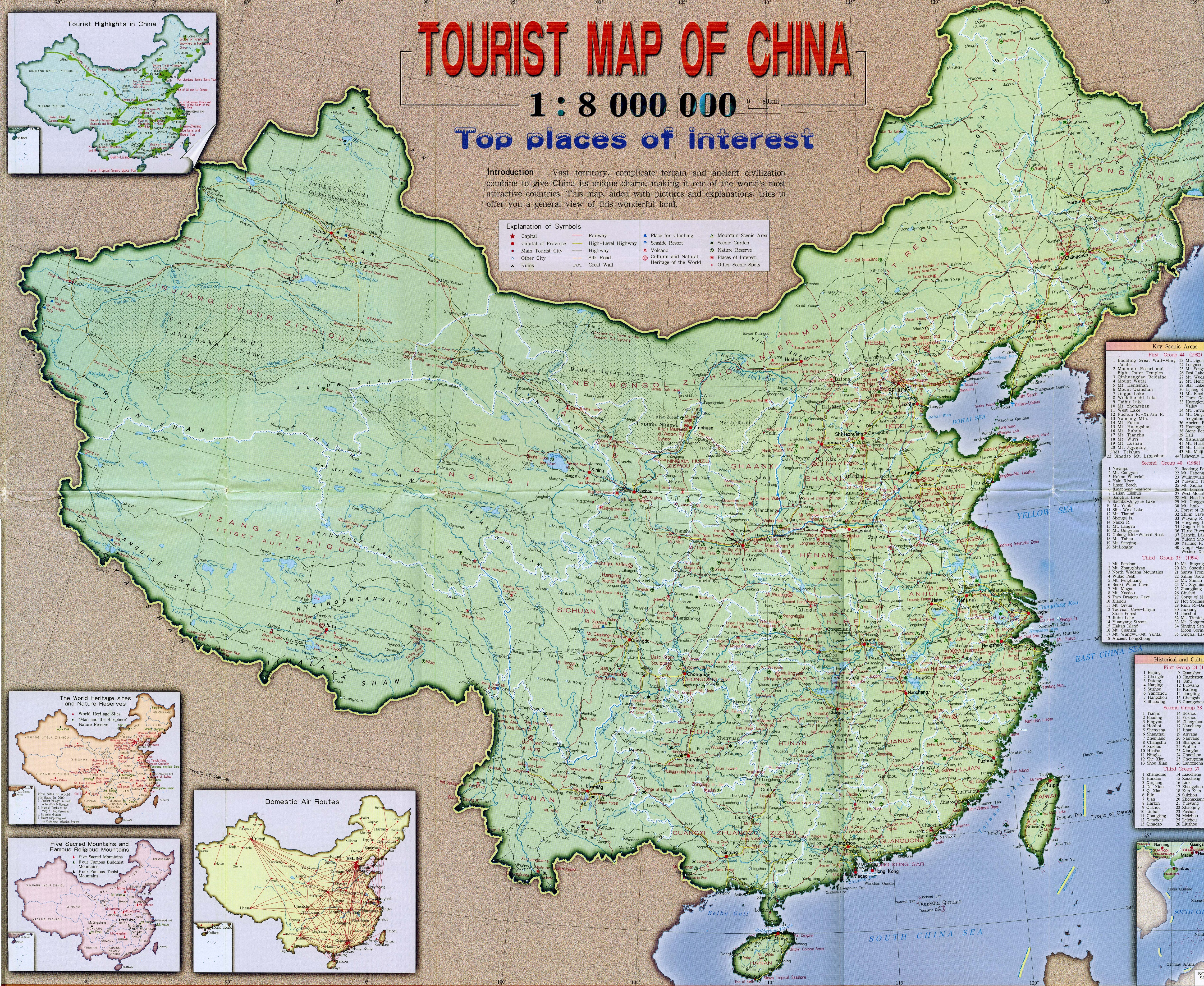Скачать карту туристических центров Китая. Размер карты 323 КБ Скачать карту