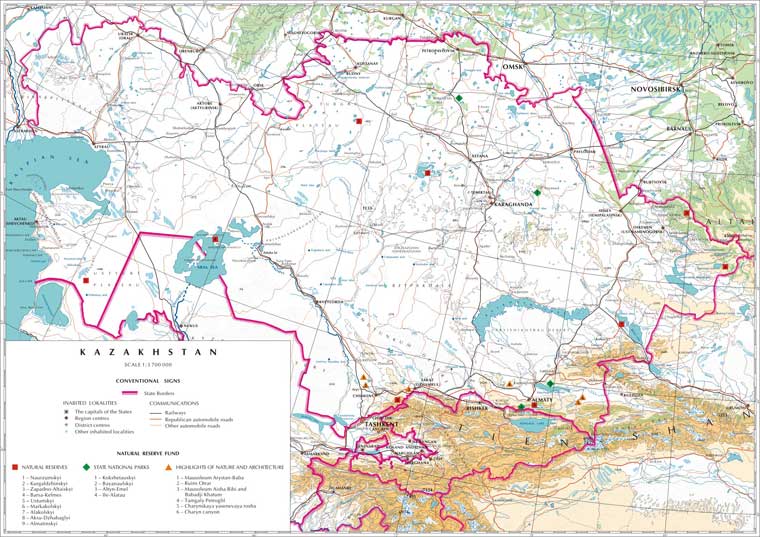 Скачать карту автодорог, национальных и природных парков Казахстана на английском языке. Размер карты 1,26 МБ Скачать карту