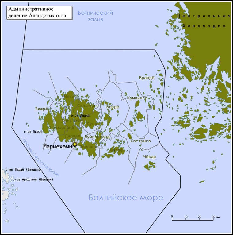 Скачать карту административно-территориального деления Аландских островов. Размер карты 425 КБ Скачать карту