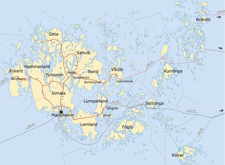 Скачать политическую карту Аландских островов с нанесенными транспортными путями. Размер карты 227 КБ Скачать карту