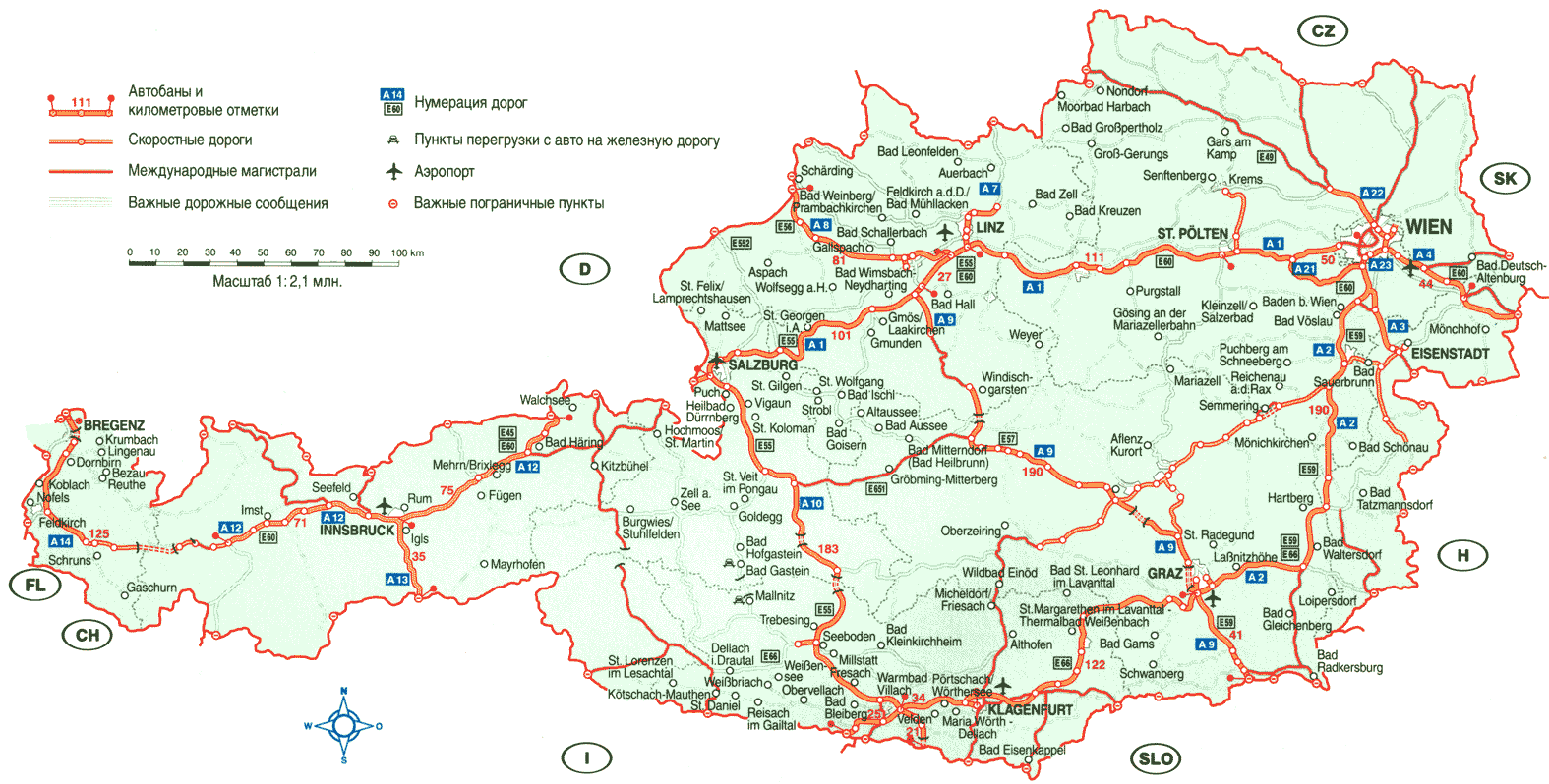 Скачать карту транспортной системы Австрии. Размер карты 368 КБ Скачать карту