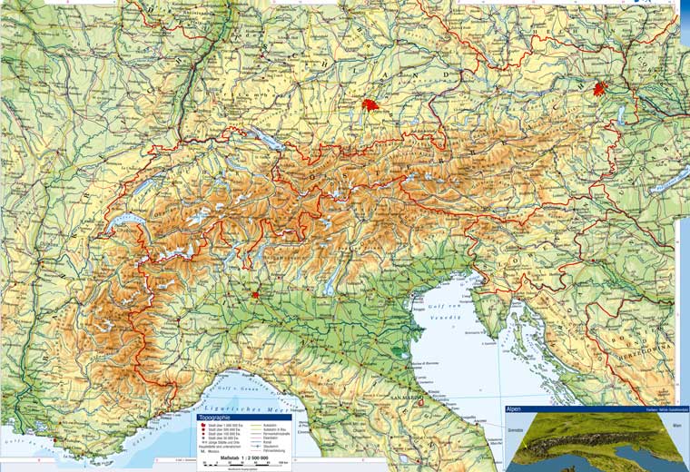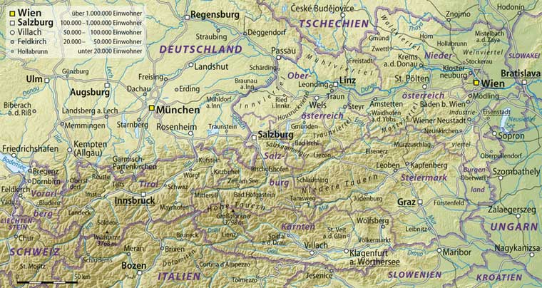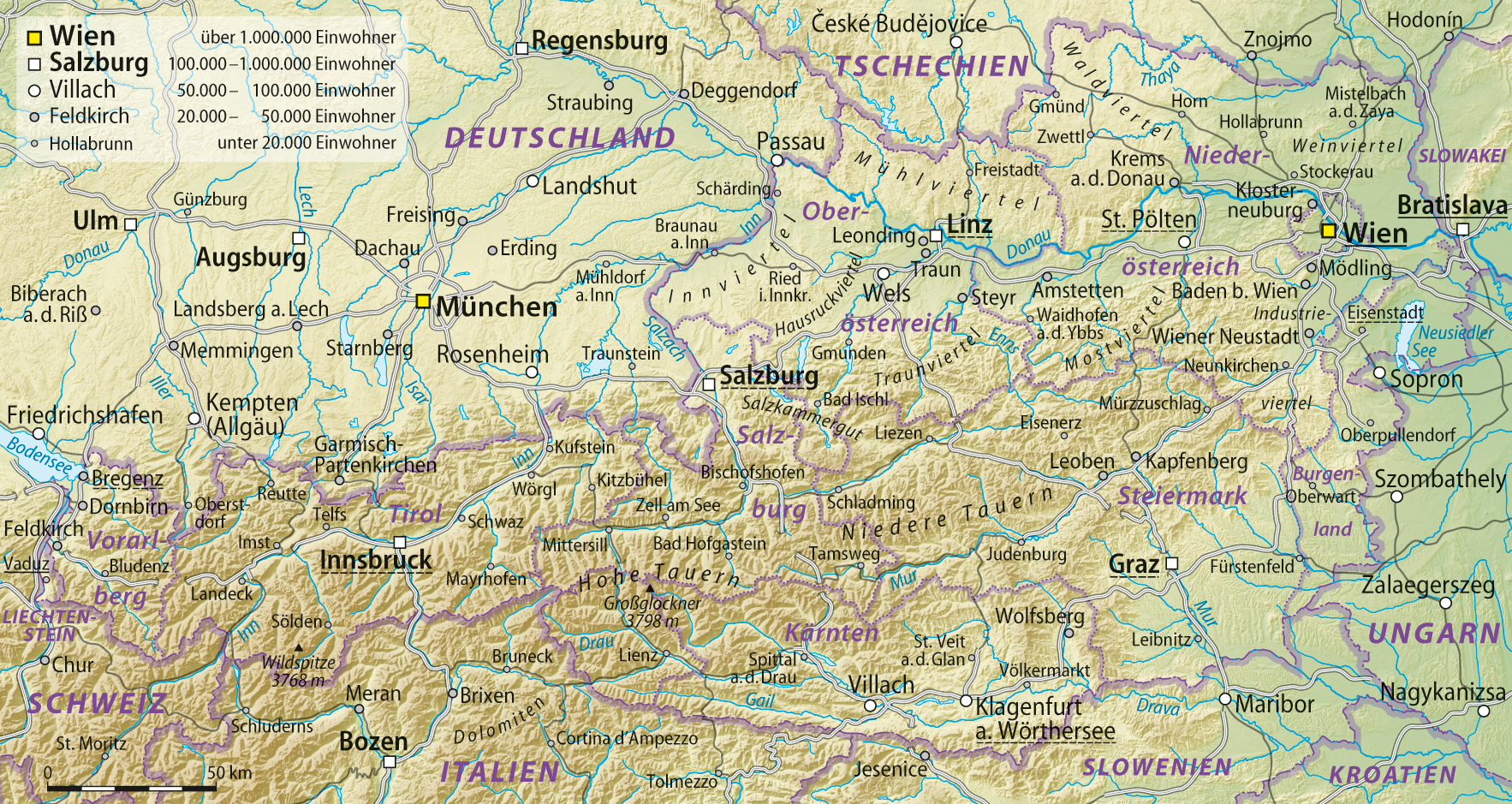 Кроме того неплохую физическую карту Австрии с обозначением горных хребтов и большинства рек можно посмотреть на сайте Austria-Forum Das österreichische Wissensnetz