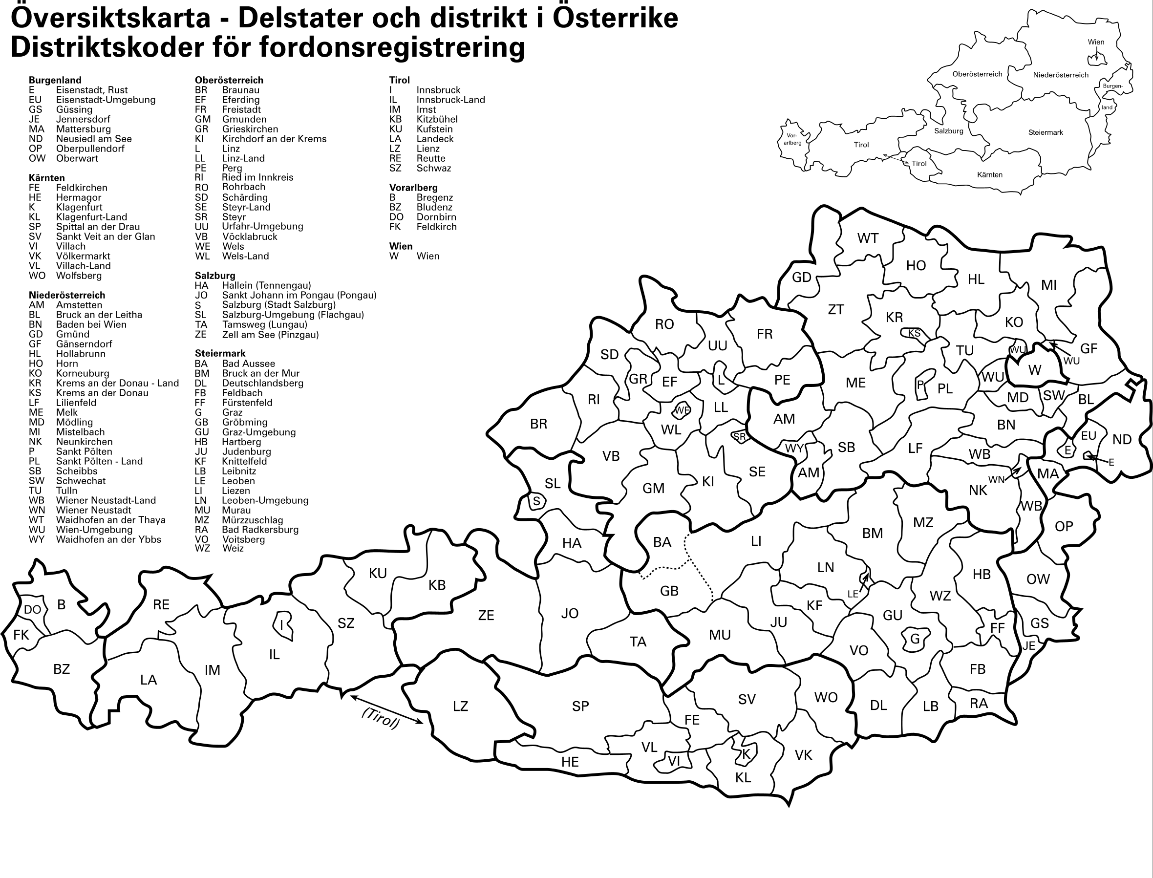 По конституции Австрия — федеративная республика и делится на 9 земель: Бургенланд, Вену, Верхнюю Австрию, Зальцбург, Каринтию, Нижнюю Австрию, Тироль, Форарльберг и Штирию. Земли состоят из округов и приравненных к ним в административном отношении городов — штатутарштадтов. В свою очередь округа делятся на более мелкие территориальные единицы — коммуны.