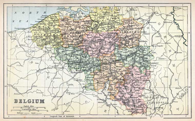 Скачать историческую карту Бельгии 1890 года. Размер карты 812 КБ Скачать карту