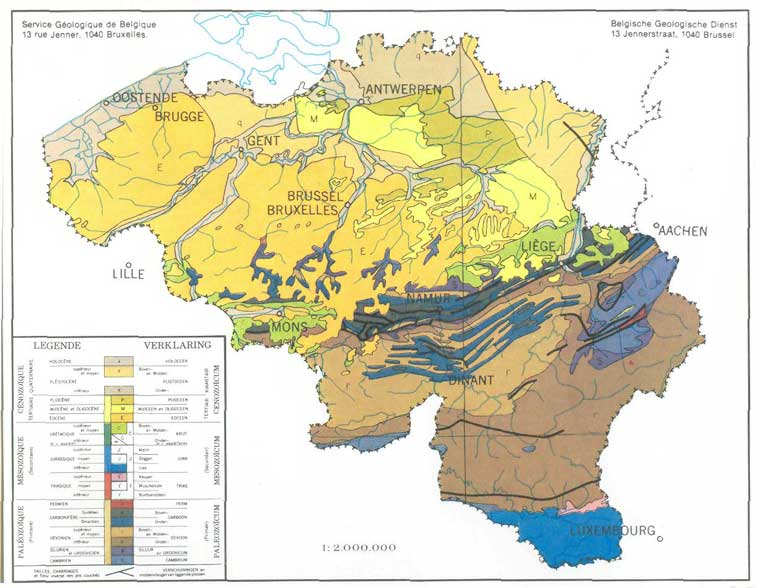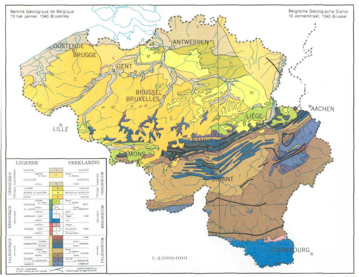 Скачать геологическую карту Бельгии с отмеченными городами и речной сетью. Размер карты 200 КБ Скачать карту