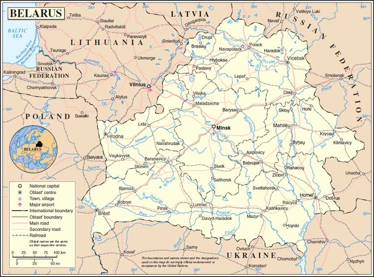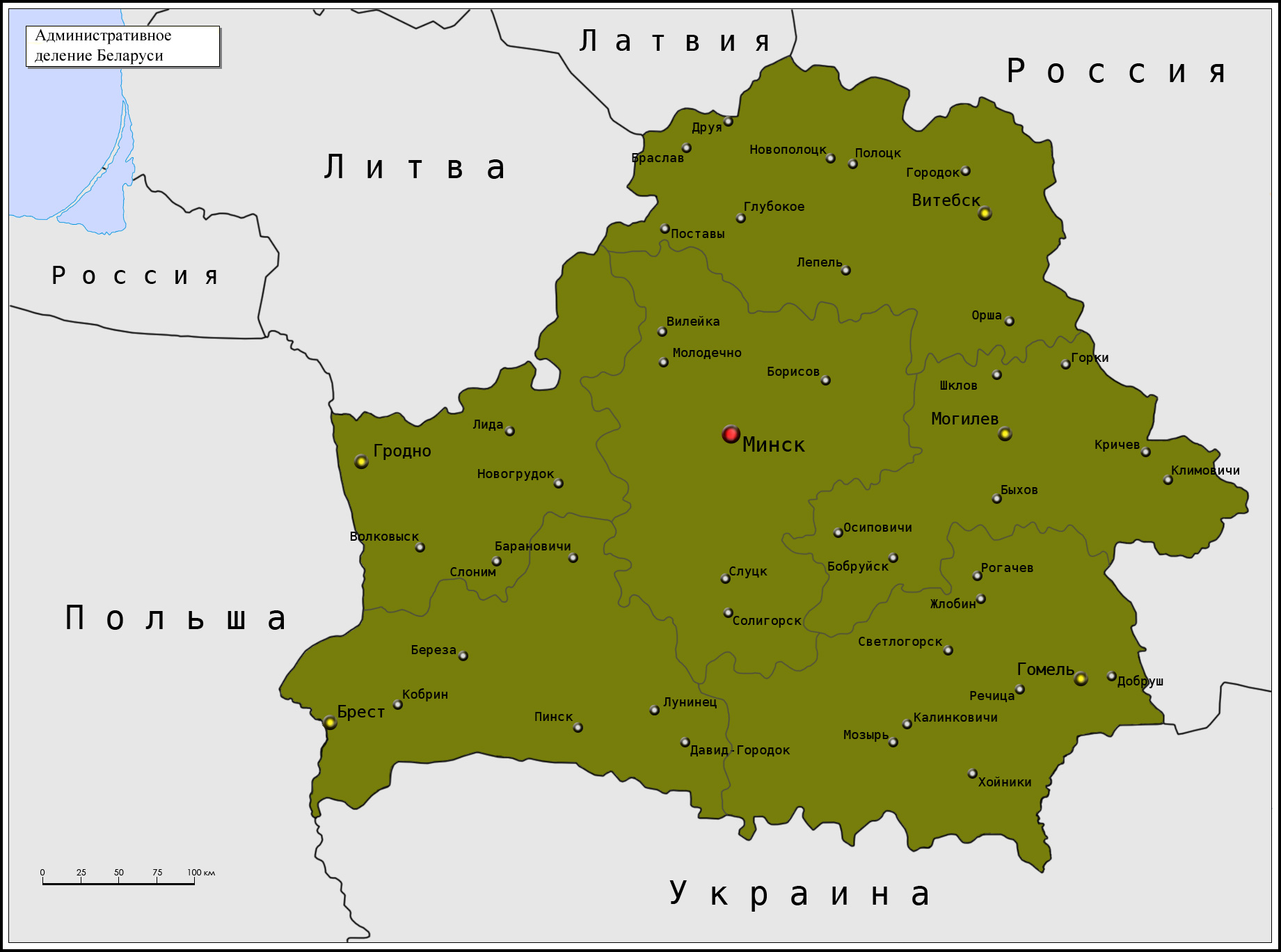 Скачать карту областей Беларуси с обозначенными городами. Размер карты 254 КБ Скачать карту