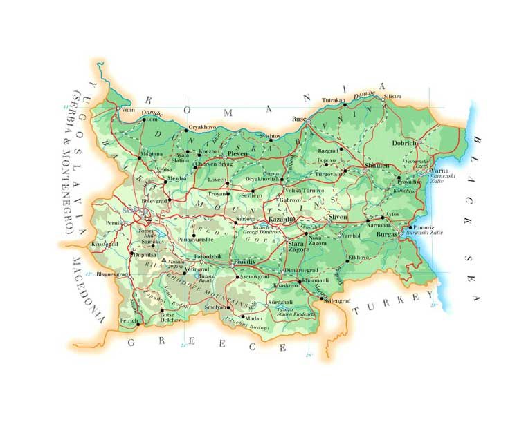 Скачать физическую карту Болгарии. Размер карты 991 КБ Скачать карту