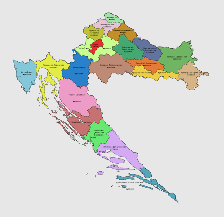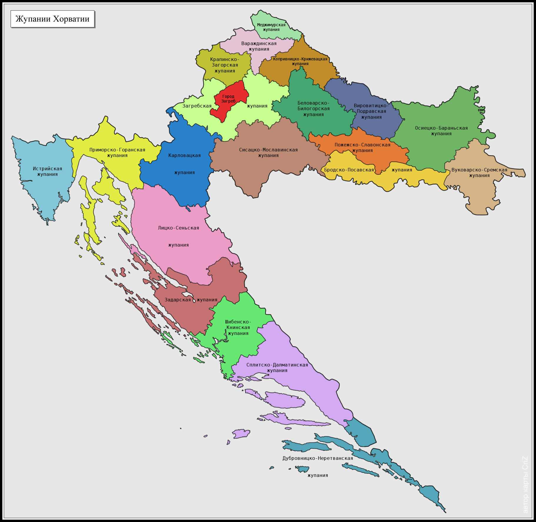 Скачать карту жупаний Хорватии на русском языке. Размер карты 386 КБ Скачать карту