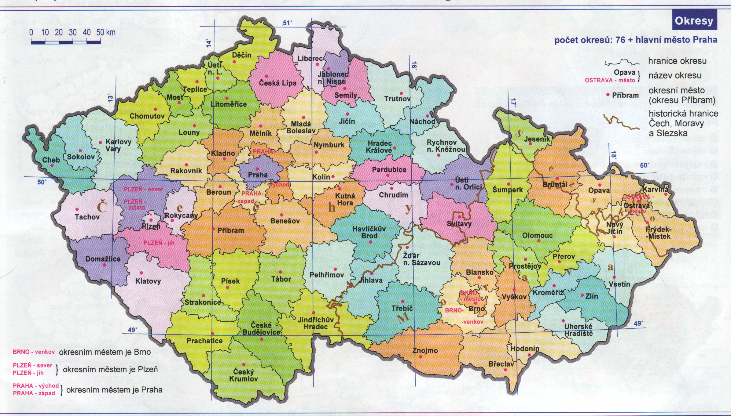 Множество подробных карт Чехии и крупномасштабных карт отдельных краев можно увидеть на этой странице.