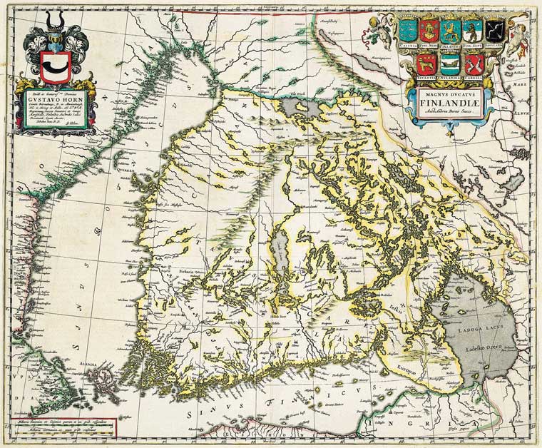 Большая карта Великого княжества Финляндского из "Atlas Maior". Создана Йоханом Блау совместно с Андреасом Буреусом.