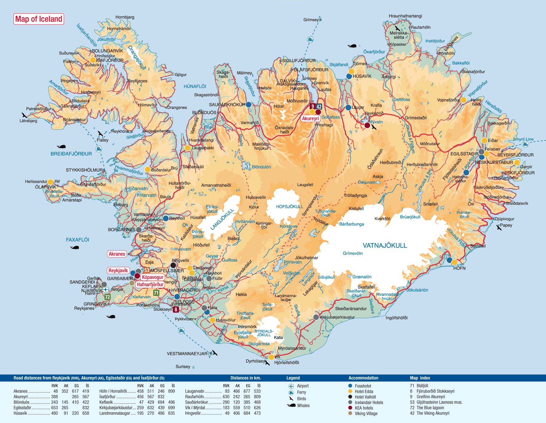 Скачать подробную туристскую карту Исландии. Размер карты 597 КБ Скачать карту