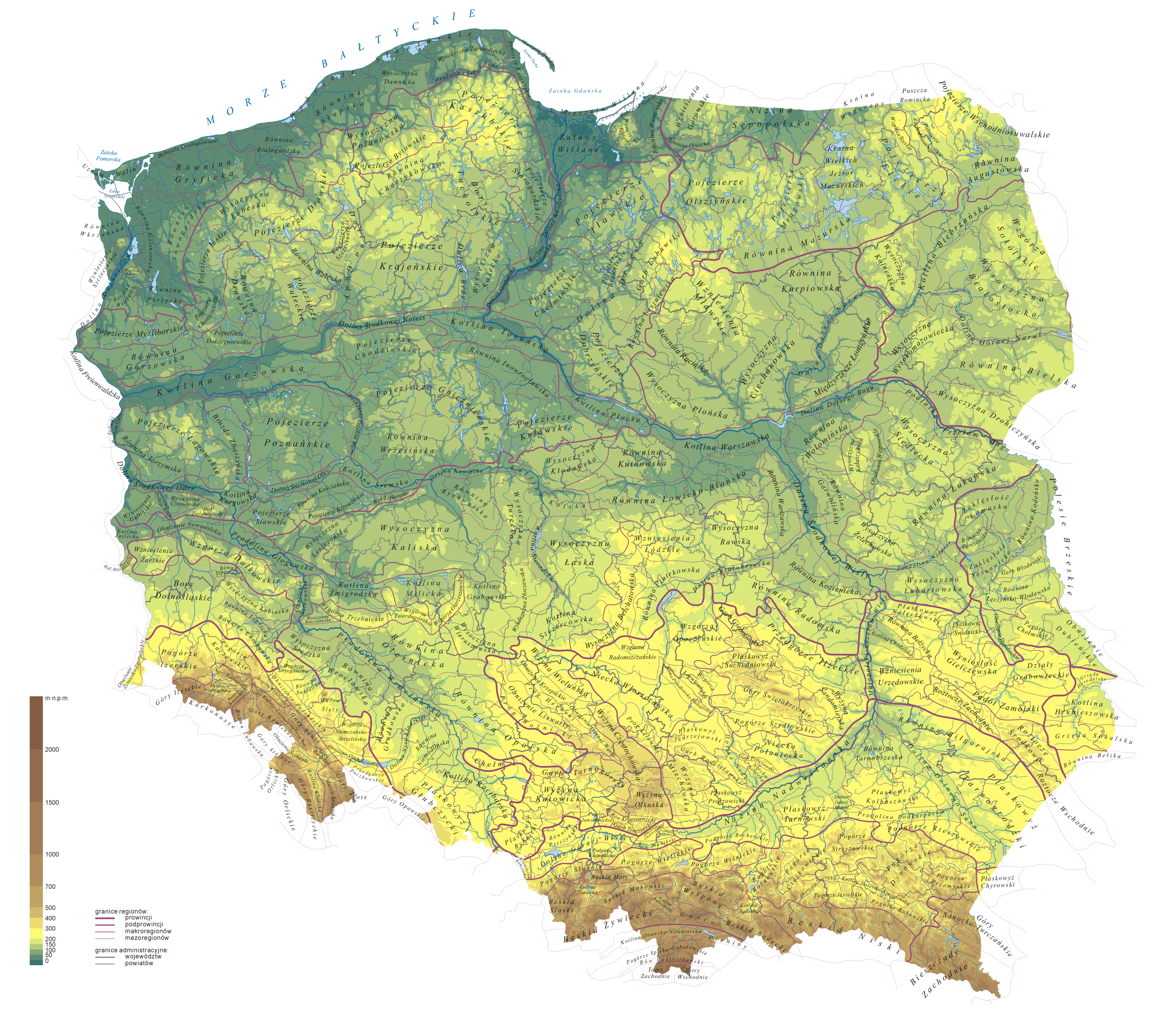 Скачать физическую карту Польши. Размер карты 6,55 МБ Скачать карту