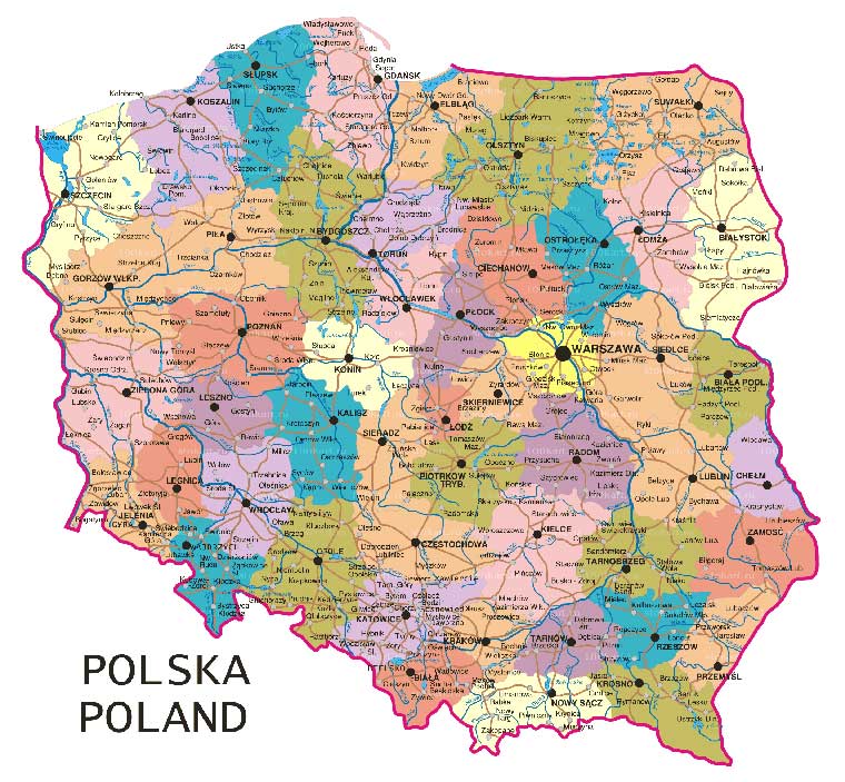 Скачать политическую карту Польши на которую нанесено большинство городов страны. Размер карты 579 КБ Скачать карту