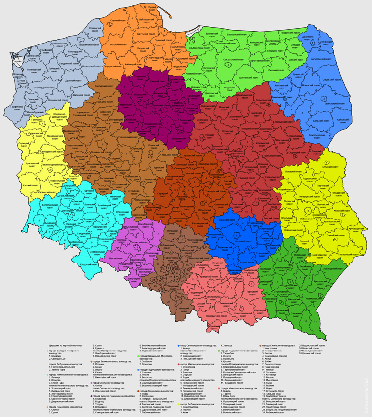Карта польских повятов создана на основе карты пользователя Aotearoa