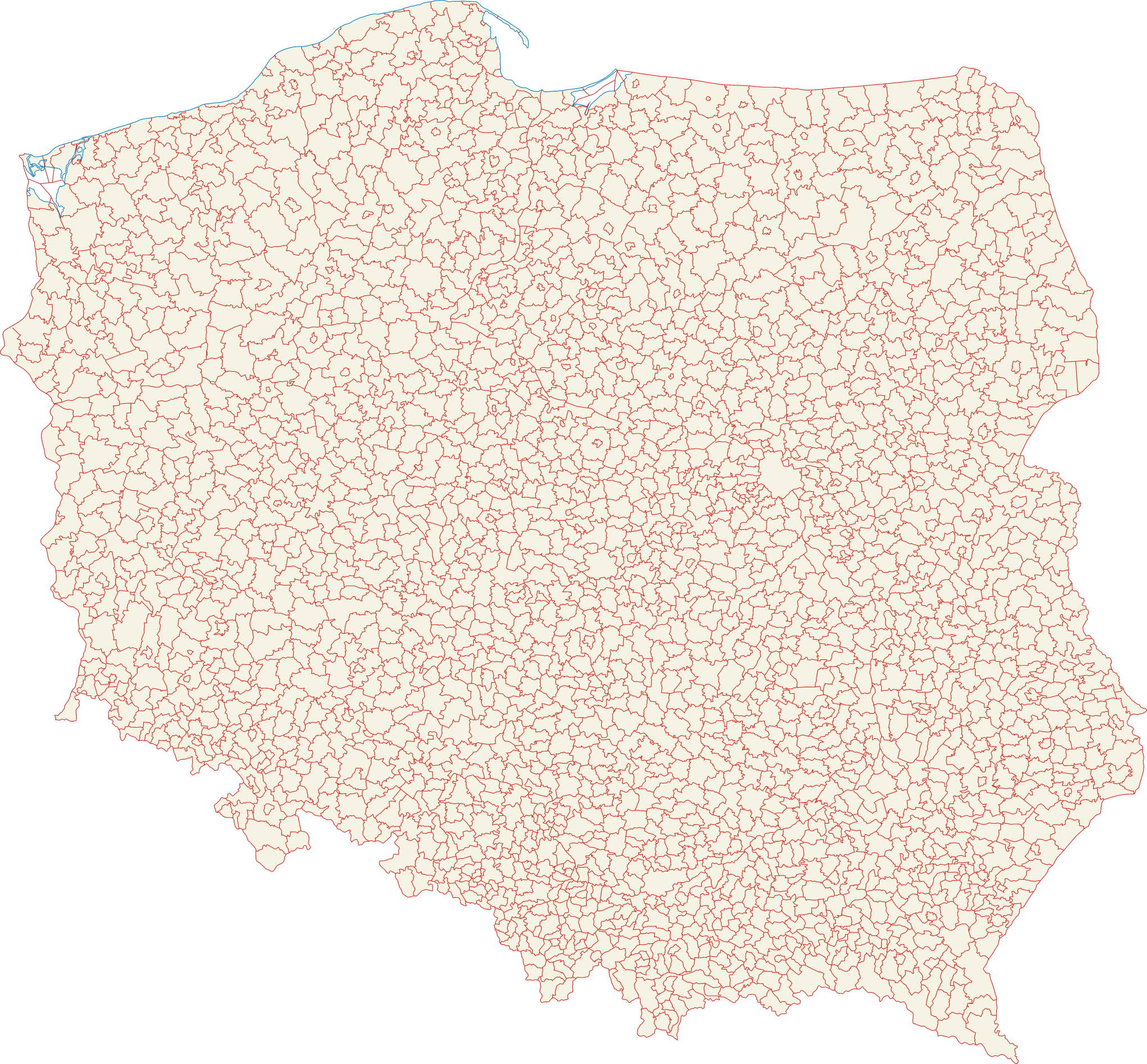 Наконец на третьем низшем уровне — 2478 гмин, которые бывают трех типов: городского, градо-сельского и сельского.