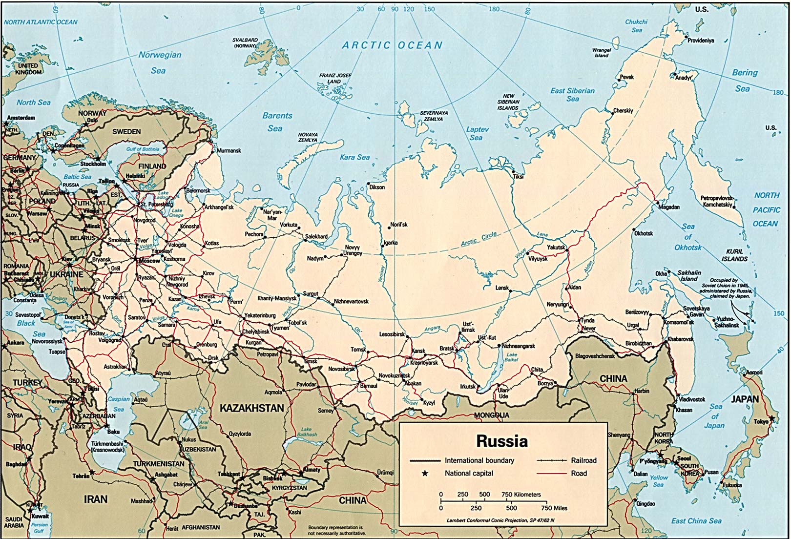 Скачать карту автомобильных и железнодорожных дорог России на английском языке. Размер карты 414 КБ Скачать карту