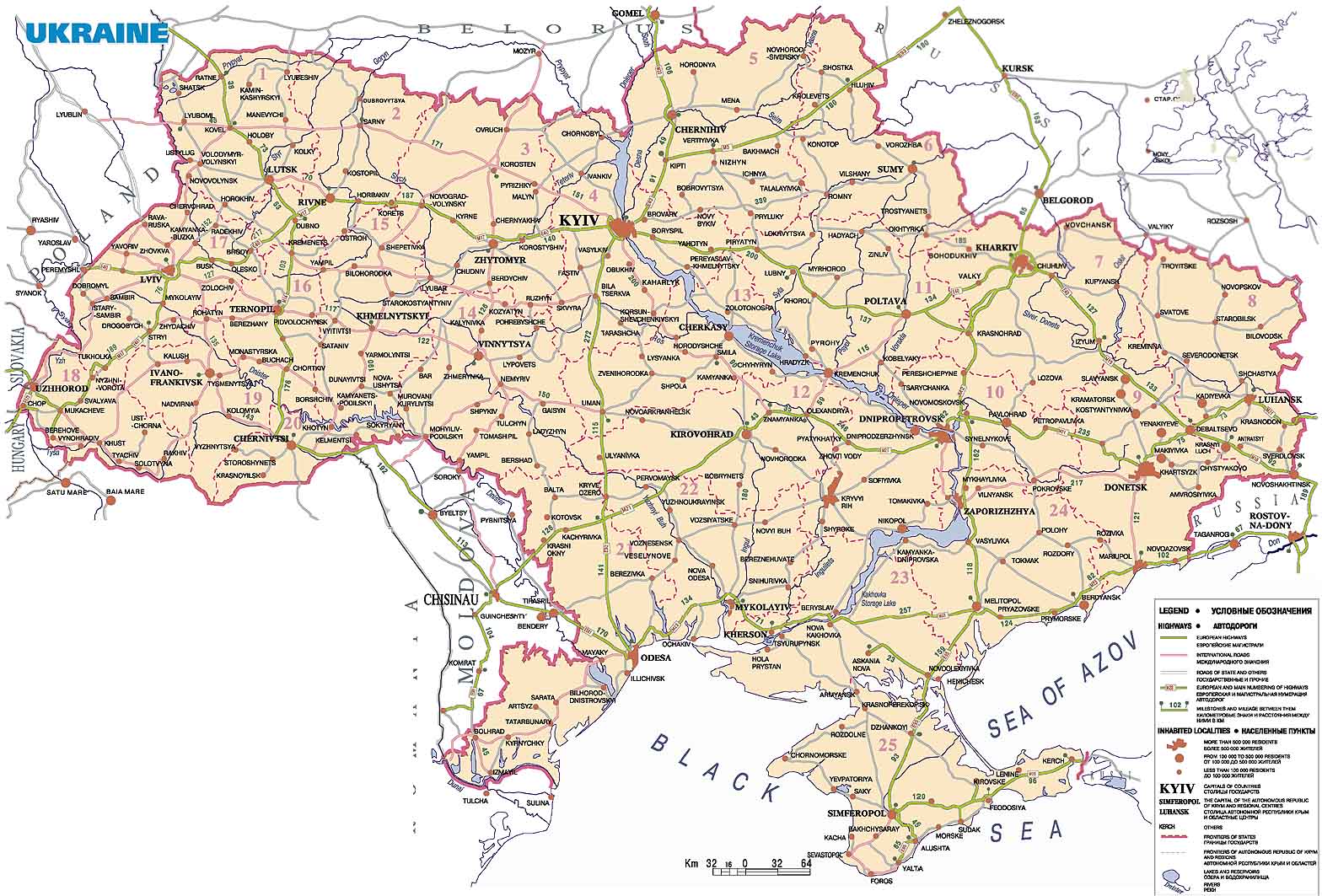 Скачать карту дорог Украины на русском языке. Размер карты 6,61 МБ Скачать карту
