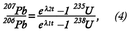 Отсюда возраст образца минерала (t) может быть вычислен по формуле: